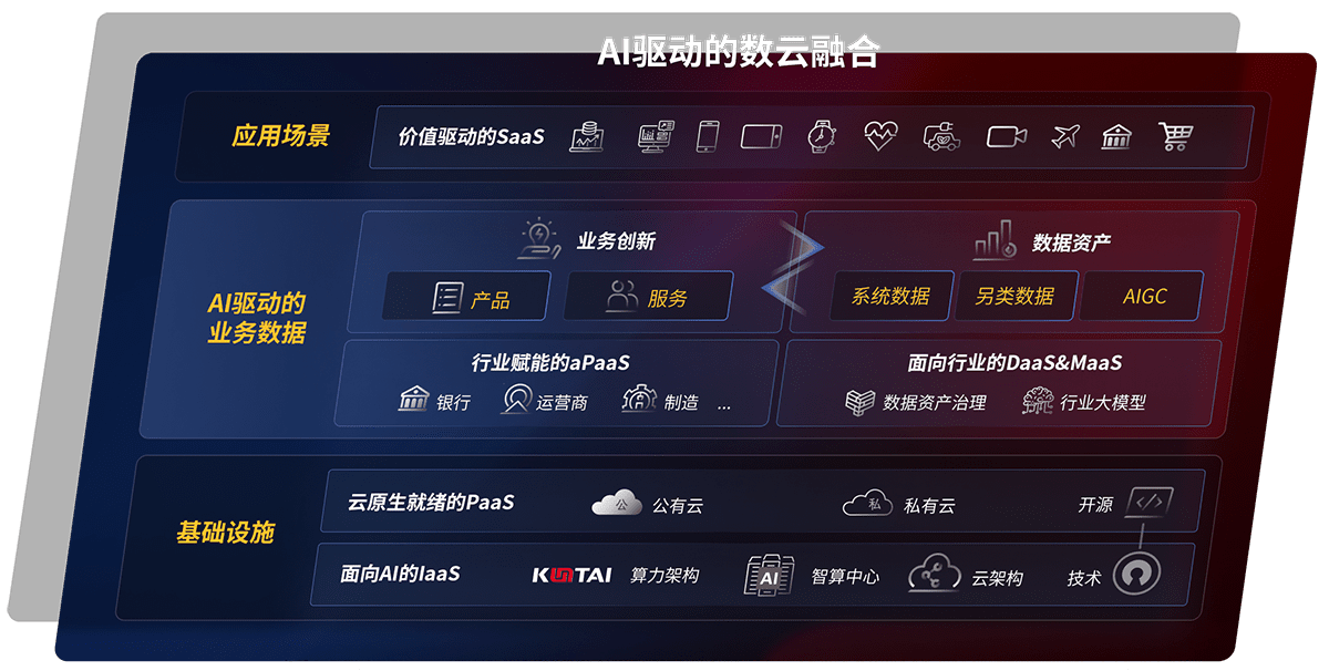 以长征平台鲲泰全国产化计算产品帮助金融行业客户构筑数字底座;以丰富的AI和数云产品及方案,,,保障数据安全,,,挖掘数据价值,,,,提升服务品质