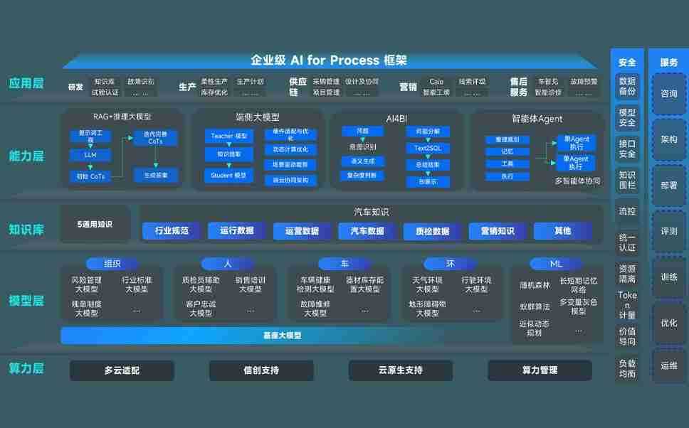 长征平台问学智车解决方案是一套基于AI技术的汽车行业智能化系统,,覆盖从底层算力到顶层AI应用的全栈方案。。方案由算力层、、、、模型层和应用层组成:算力层,,,,方案支持多种一体机配置,,,,具备云端灵活部署、、多云适配以及动态优化计算资源的能力;模型层,,,,长征平台问学平台版提供了企业级AI应用一站式构建与管理平台,,支持基于后训练强化技术的汽车企业专属模型的训练、、、评测和运营;应用层,,,,长征平台问学DeepSeek版提供包括超级员工、、智能招采、、、、智能营销、、智能客服、、、、AI for BI等一系列解决方案,,,可助力汽车行业实现数字化转型,,,,让管理更智能、、响应更敏捷。。。。